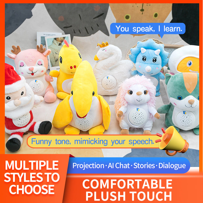 This interactive plush smart toy blends cute designs with high - tech features: It supports funny voice mimicry (repeating kids’ words in a cute tone to spark their desire to express), AI - powered chat (answering questions and telling stories for growth - side companionship), and projection storytelling (creating a cozy bedtime vibe). With over 10 adorable styles like dinosaurs and swans to pick from, its skin - friendly plush and rounded edges ensure safety. Acting as a perfect play - and - learn partner for kids, and a thoughtful choice for bedtime soothing or gifting, it unlocks a joyful “play - while - growing” experience for childhood!